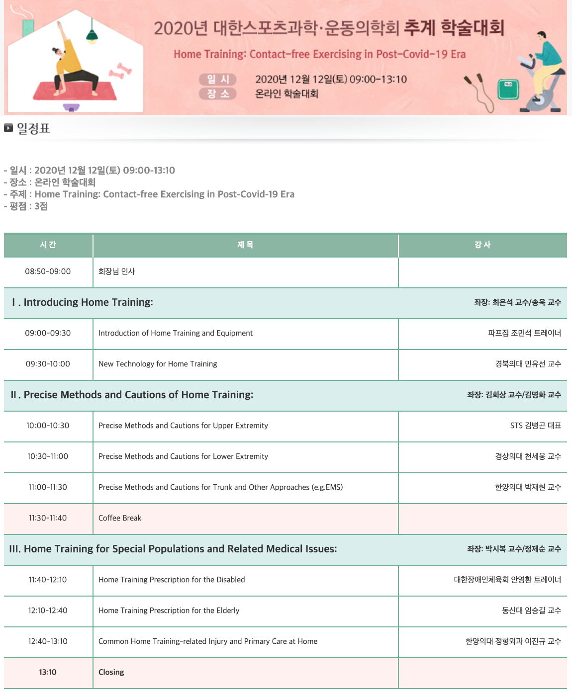 2020년 대한스포츠과학운동의학회 추계학술대회