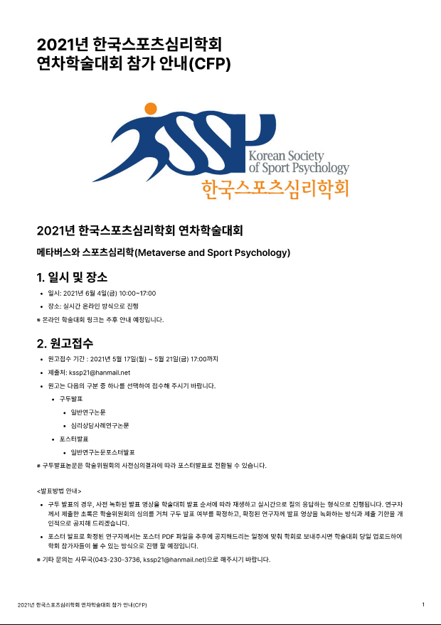 2021년 한국스포츠심리학회 연차학술대회