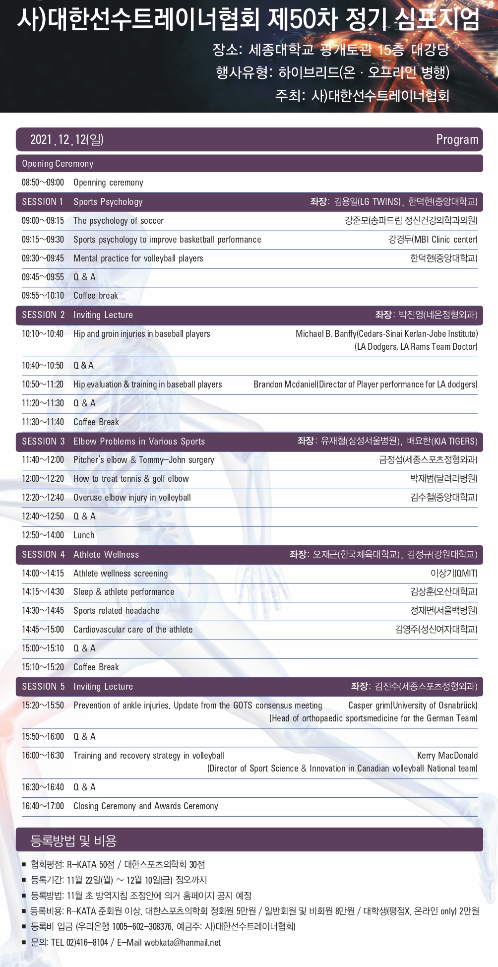 사)대한선수트레이너협회 제50차 정기 심포지움 (온∙오프라인 병행)