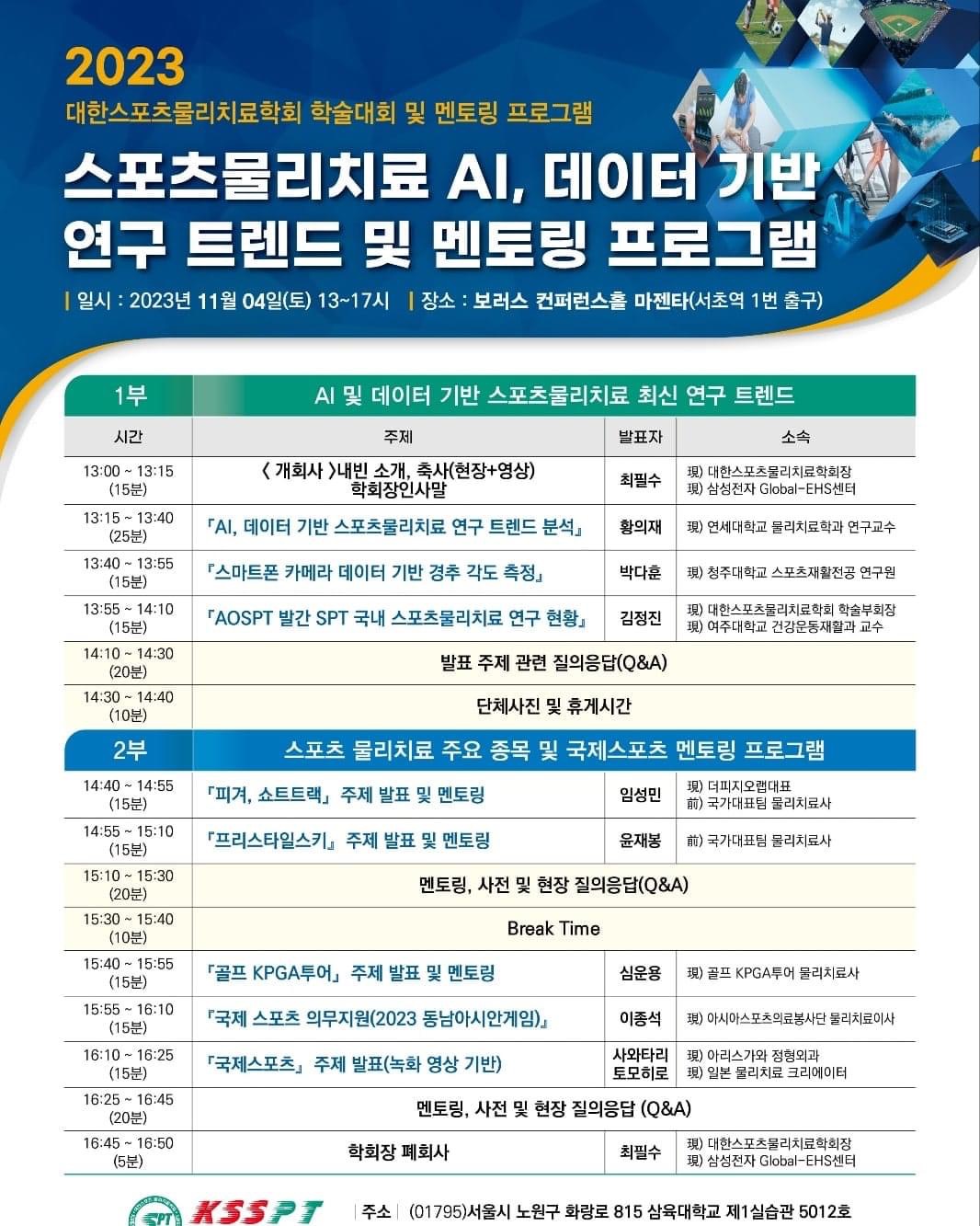 2023 대한스포츠물리치료학회 학술대회 및 멘토링 프로그램