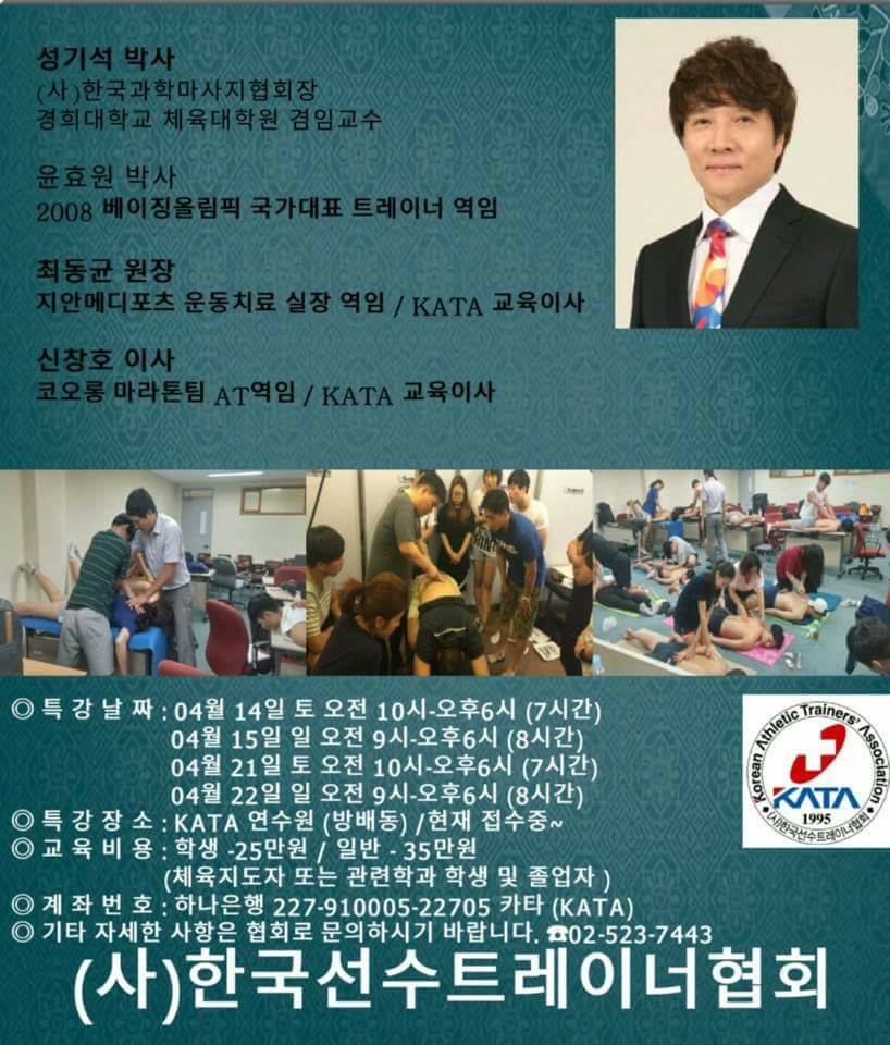 스포츠활동을 많이하는 현대인들과 운동선수 및 지도자, 요가, 필라테스, 헬스트레이너, 코치나 마사지테라피스트을 위한 스포츠마사지 특별강의가 아래와 같이 실시합니다.