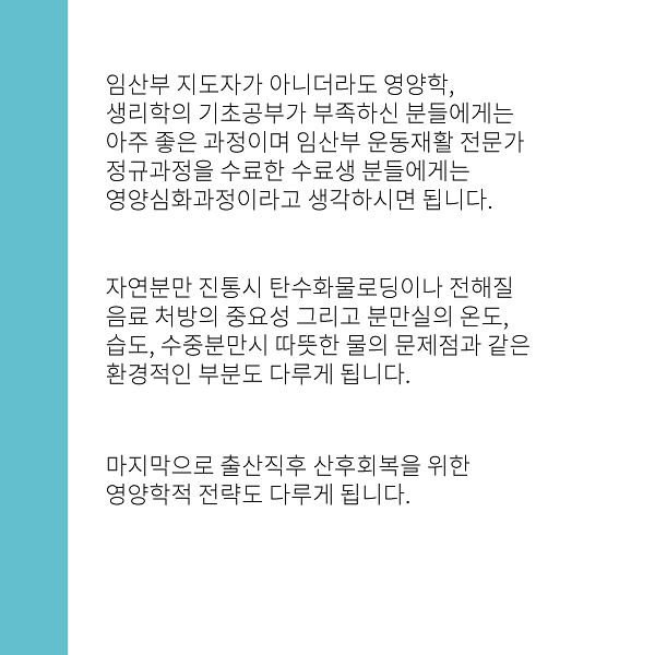 최근 발표된 미국 산부인과 학회의 가이드라인과 기초 영양학 생리학공부를 함께 할수 있는 원데이 자격과정입니다~