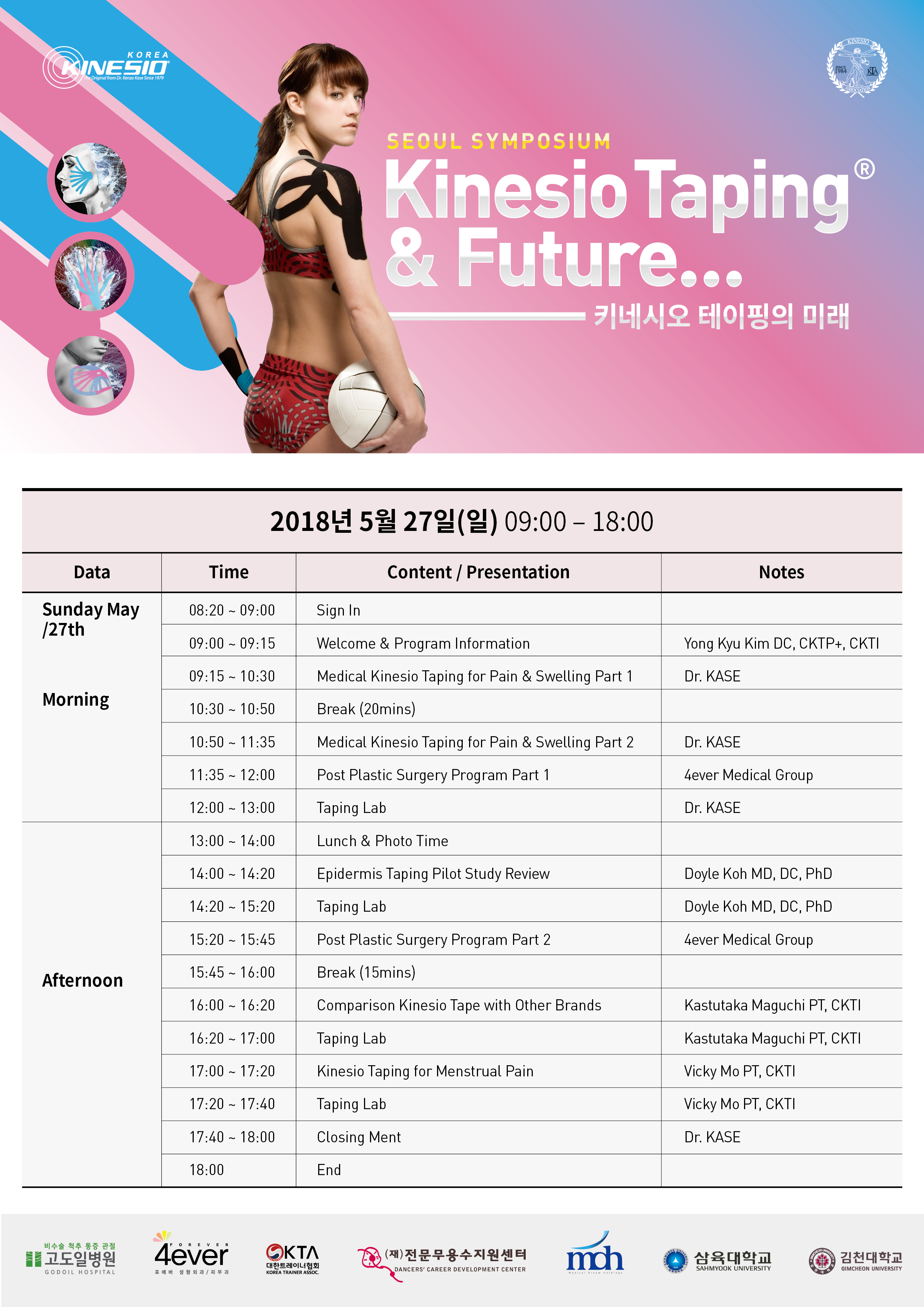 아마 이번 심포지엄이 닥터 켄죠 카세가 참여하는 마지막이 될 수 있으니 키네시오테이핑에 관심 있으신 분들은 꼭 참여해주시기를 바라겠습니다.