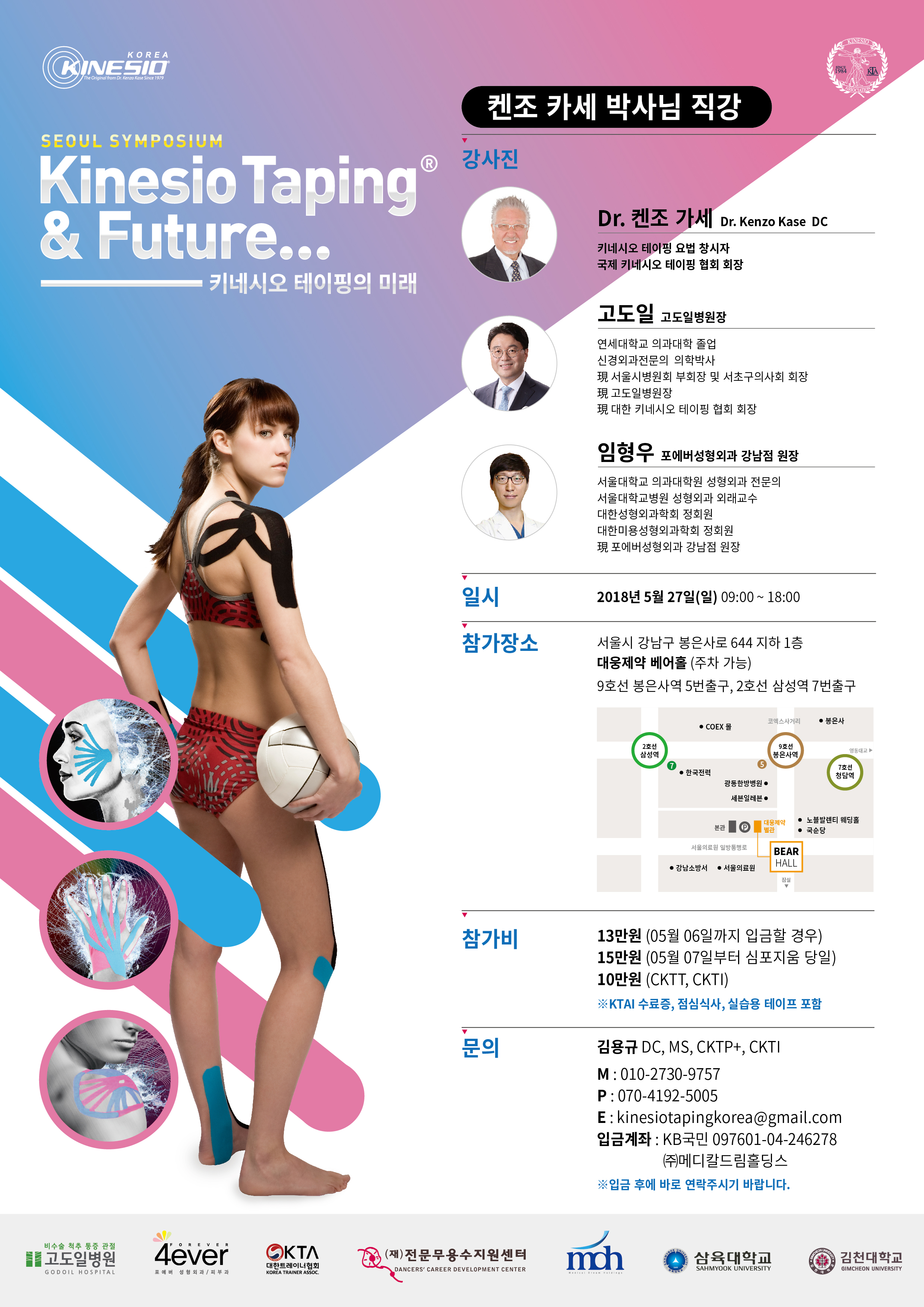 2018년 5월 27일. 키네시오테이핑의 창시자인 닥터 켄조 카세의 키네시오테이핑 심포지엄이 서울에서 열리겠습니다.