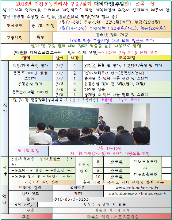 실기/구술 건강운동관리사 2018대비 현장실습 안내