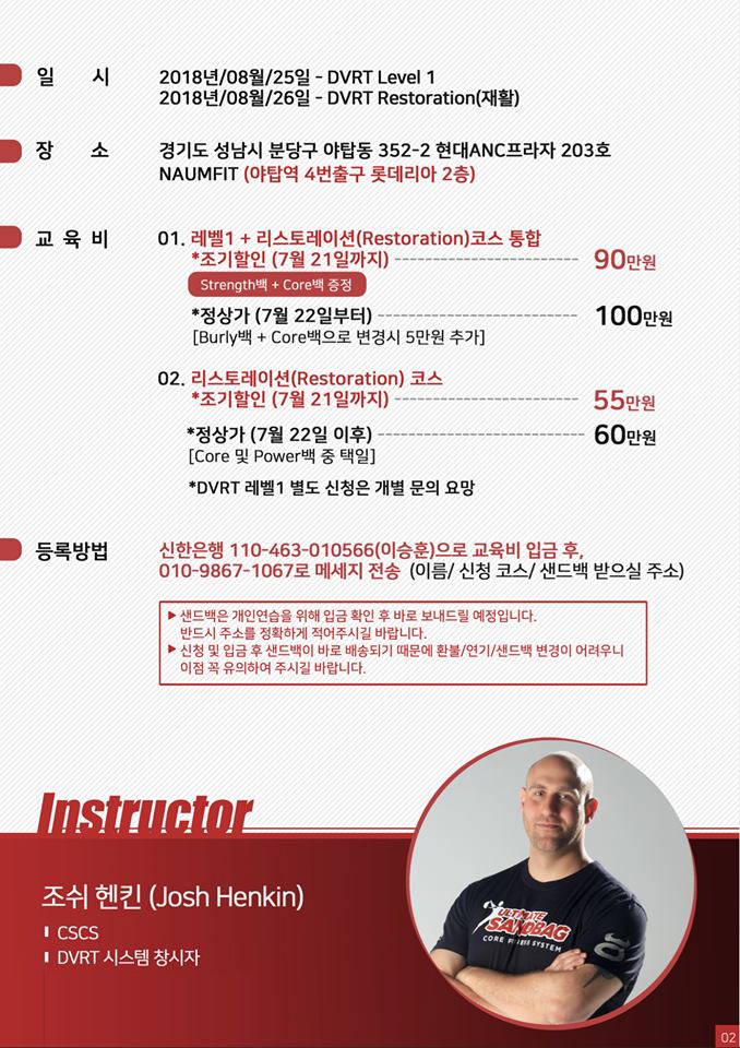 오랜만에 한국에서 직접 강의하시게 되는 DVRT 시스템 창시자 Josh Henkin 선생님의 일정이 8월에 열리게됩니다.