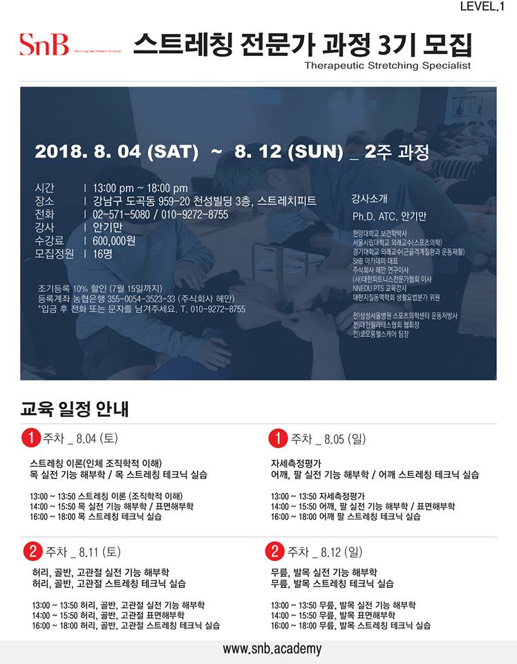 2018 스트레칭 전문가 과정 3기를 모집합니다.