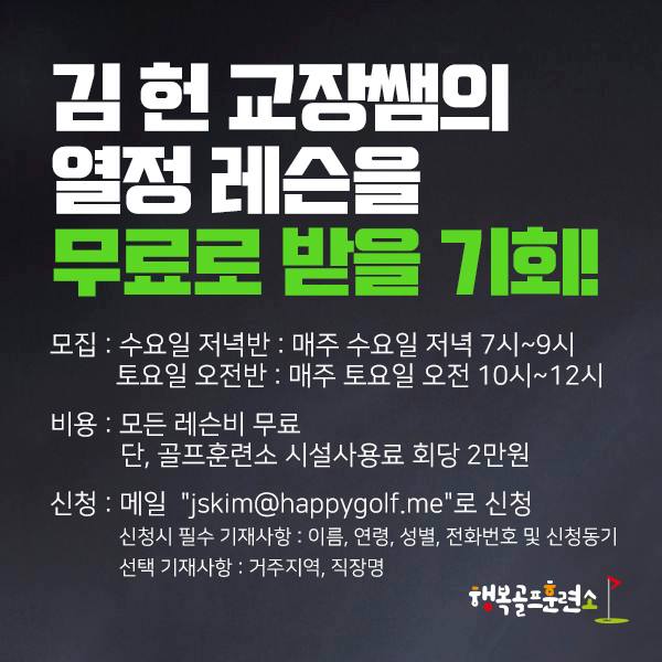신청 : 메일 "jskim@happygolf.me"로 신청