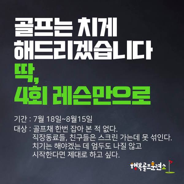 정확히 한달 4번의 수업으로 골프를 치게 해드립니다.