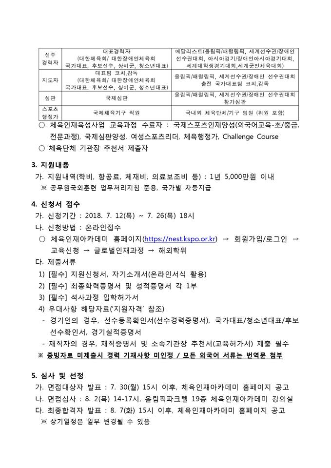 자세한 사항은 체육인재아카데미 홈페이지 및 국제스포츠정보센터의 공고문을 참고하시기 바랍니다