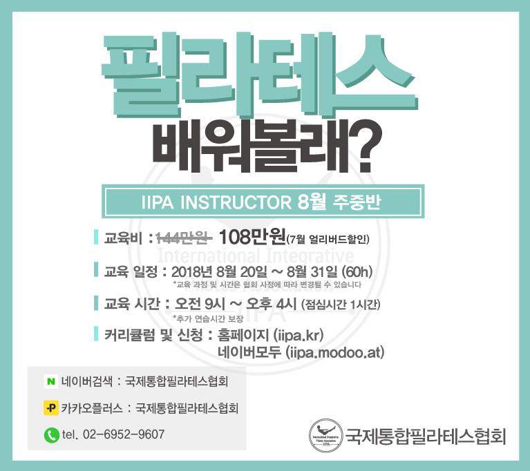 IIPA Instructor 과정 8월 주중반을 모집합니다.
