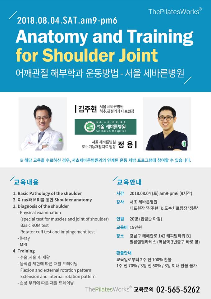 ※ 해당 교육을 수료하신 경우, 서초세바른병원과의 연계된 운동 처방 프로그램에 참여할 수 있습니다.