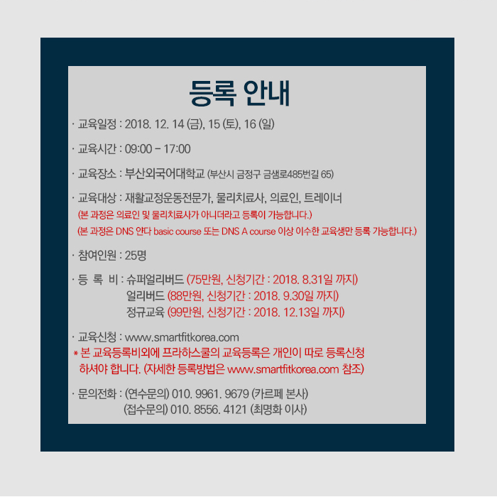 DNS 얀다의 기능적 평가와 치료 접근 방법 어드벤스 코스가 부산에서 열립니다.!