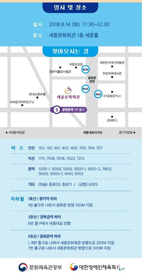 ㅇ 일시/장소: ‘18. 8. 14.(화) 11:30 / 세종문화회관 세종홀