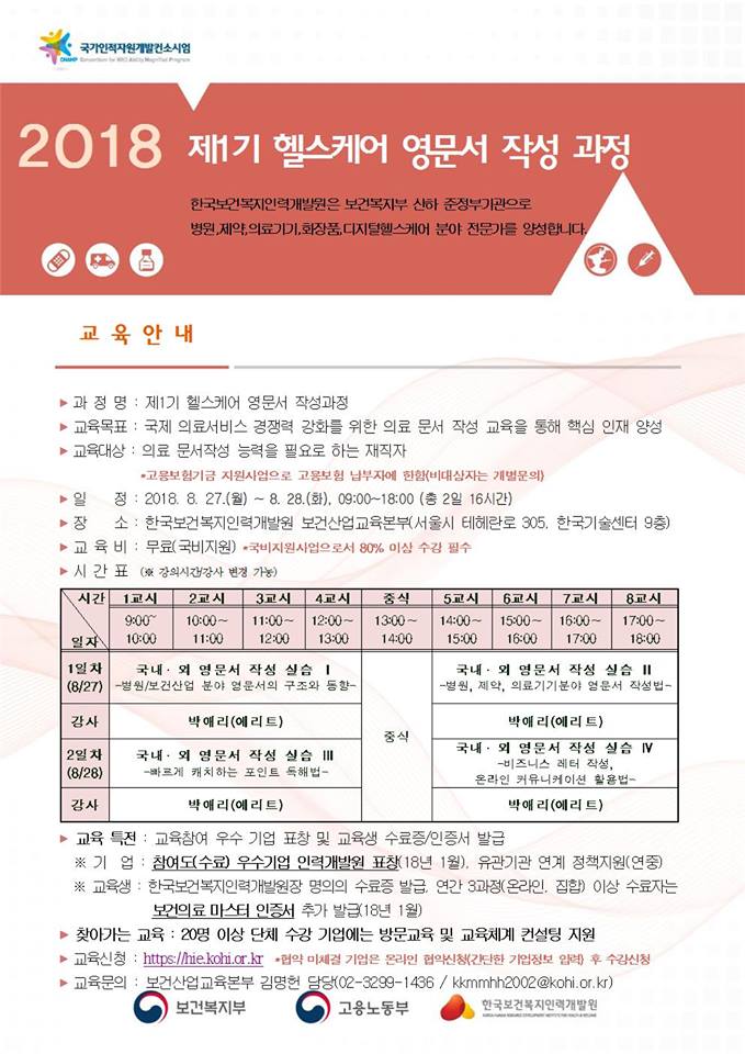 ★ 교육문의: 제약/의료기기/화장품교육부 김명헌 담당(02-3299-1436, kkmmhh2002@kohi.or.kr)