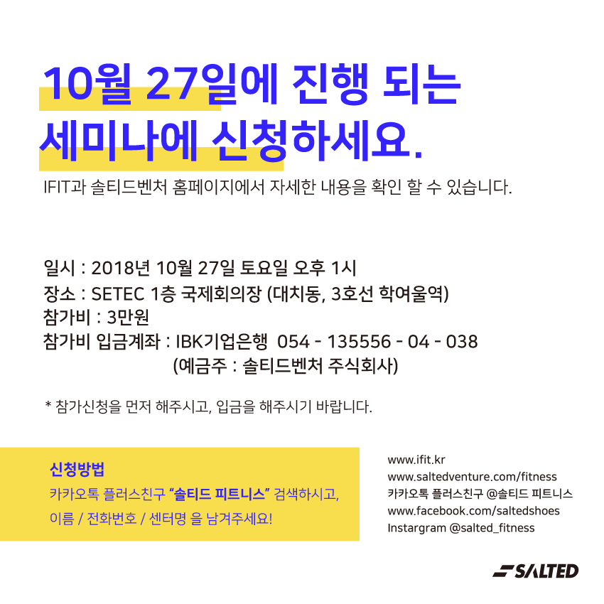 신청방법 : 카카오톡 플러스친구 “솔티드 피트니스” 검색,