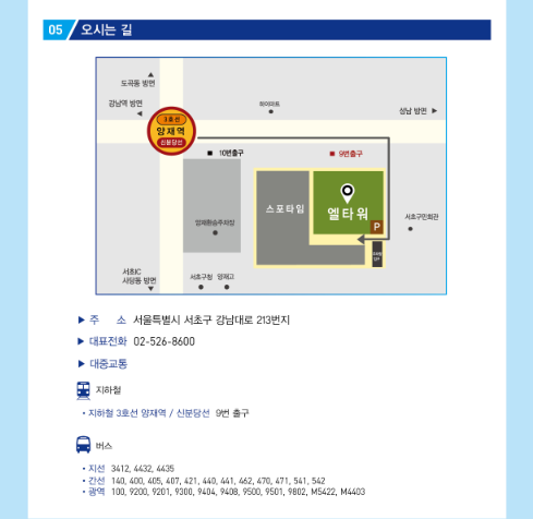 장소서울특별시 서초구 강남대로 213, 스포타임 엘타워 (양재동)