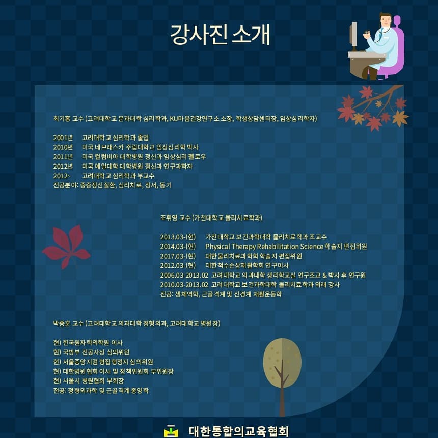 제가 고대통합의학교실연구교수로 있을때 고대에서 시작한 단체이고, 평이사로 있다가 올해부터 학술이사로 활동중입니다