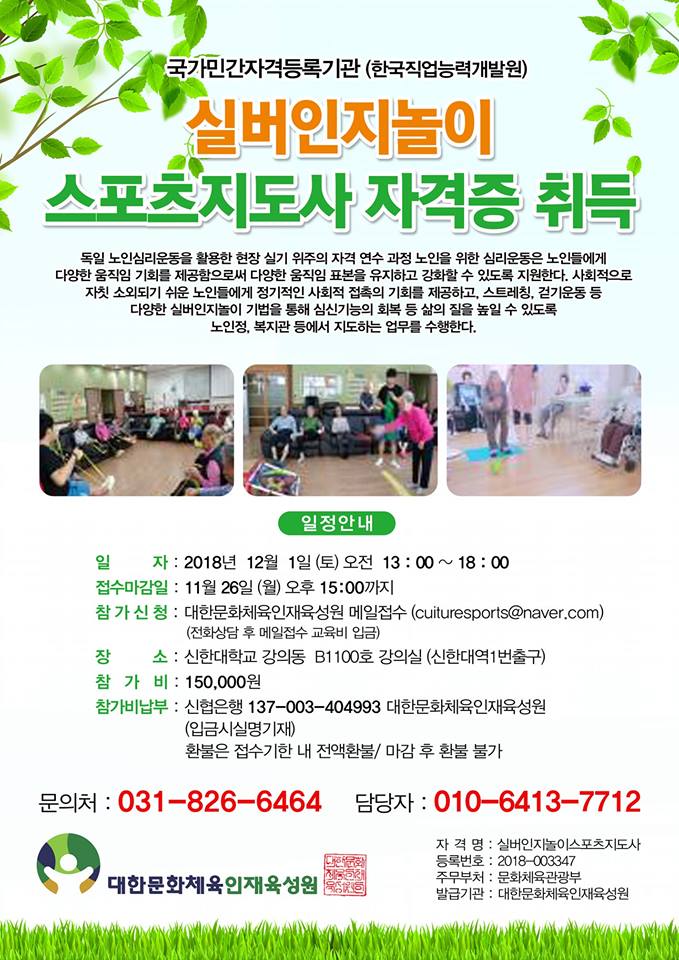 실버인지놀이 스포츠지도사 자격증 취득