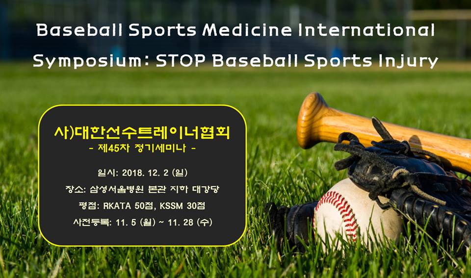 다가오는 12월 2일(일) 삼성서울병원에서 ”Baseball Sports Medicine International Symposium: STOP Baseball Sports Injury“을 주제로 제45차 정기세미나를 개최합니다.