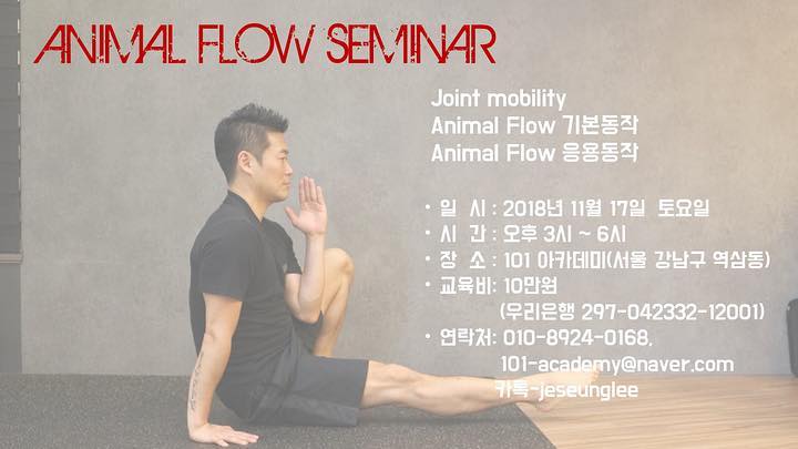 11월 17일 오후 3-6시까지 애니멀플로우 & 관절가동성운동 세미나를 엽니다.